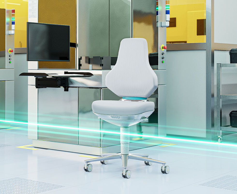 Bimos chairs are designed for optimal comfort in demanding work environments such as cleanrooms, laboratories, ESD areas, the semiconductor industry, and data centers. They support the body’s natural posture and promote active sitting, featuring adjustable backrests, seats, and seat height to ensure long-term ergonomic working